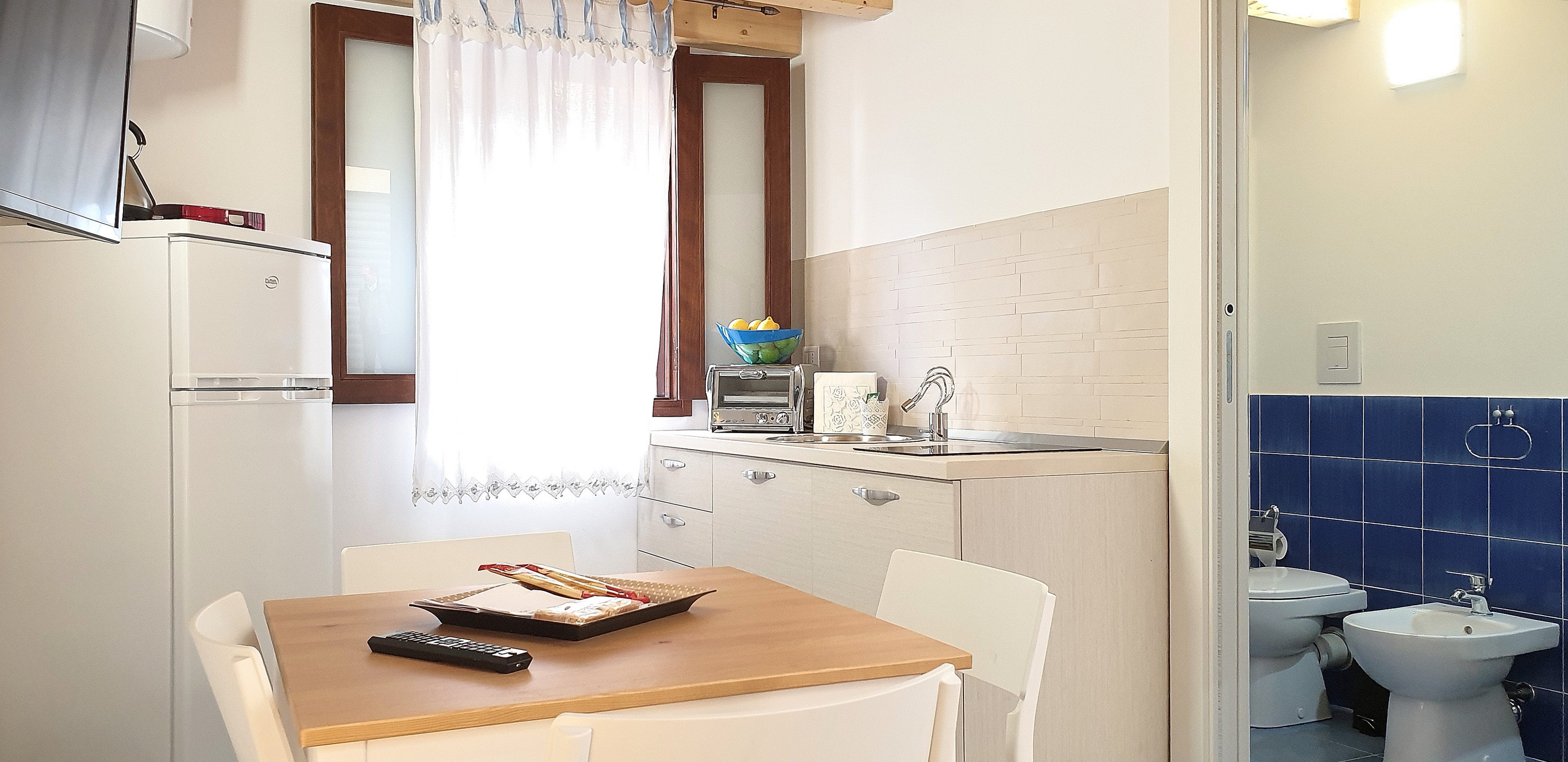 Il monolocale “Alicudi” è situato al piano terra, soppalcato con 2 posti letto.